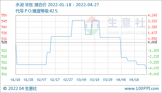 近期華東地區(qū)水泥價格以小幅下跌為主,江蘇地區(qū),受雨水天氣影響,4月25日左右江蘇部分地區(qū)部分水泥廠家各品種水泥價格下調(diào),跌幅在20-30元/噸。受到公共安全事件的影響,各地管控加嚴(yán),工地施工進度放緩,市場需求持續(xù)不佳,水泥價格整體偏下運行。
